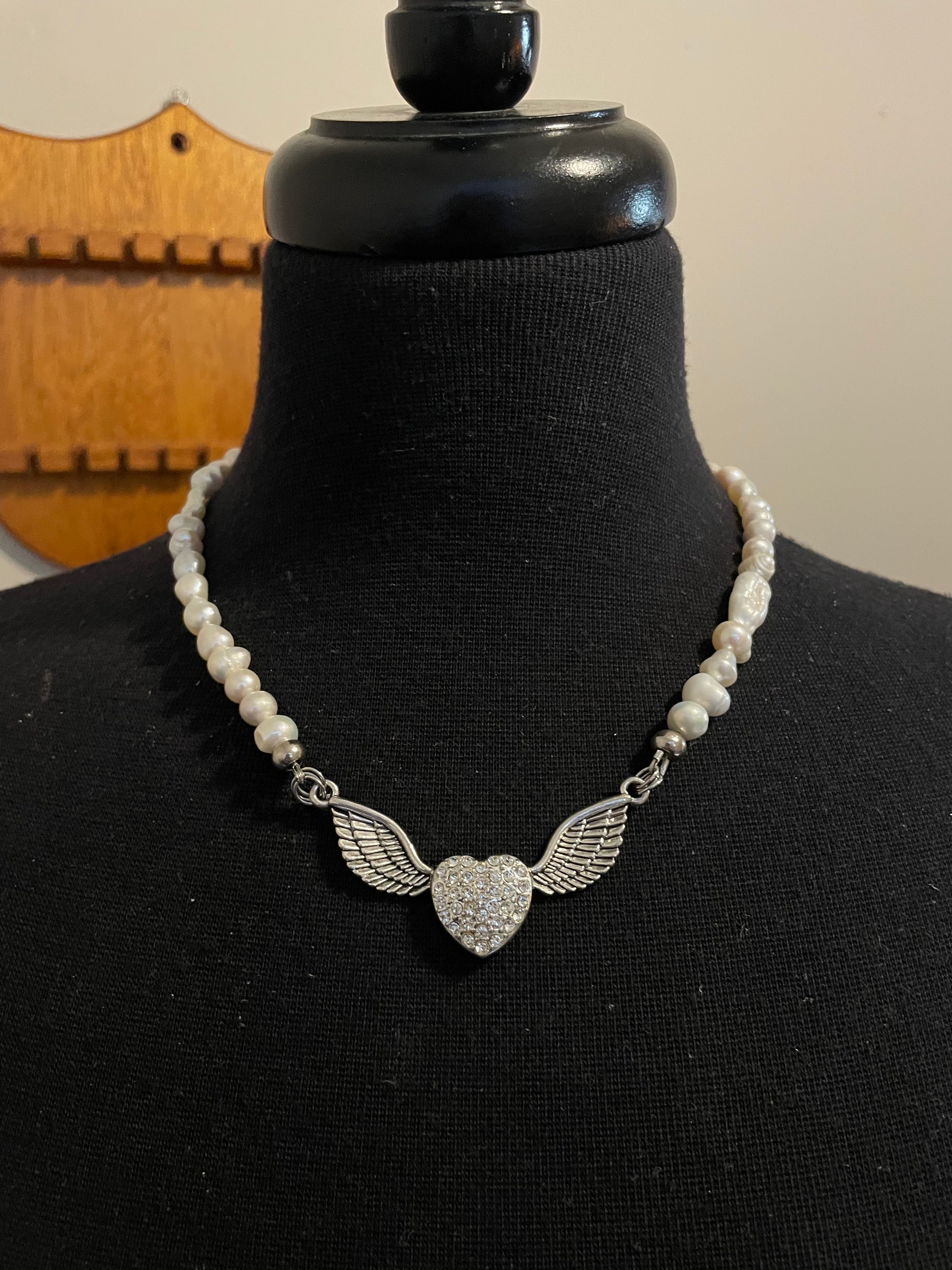 Made with freshwater pearls and an angel pendant.