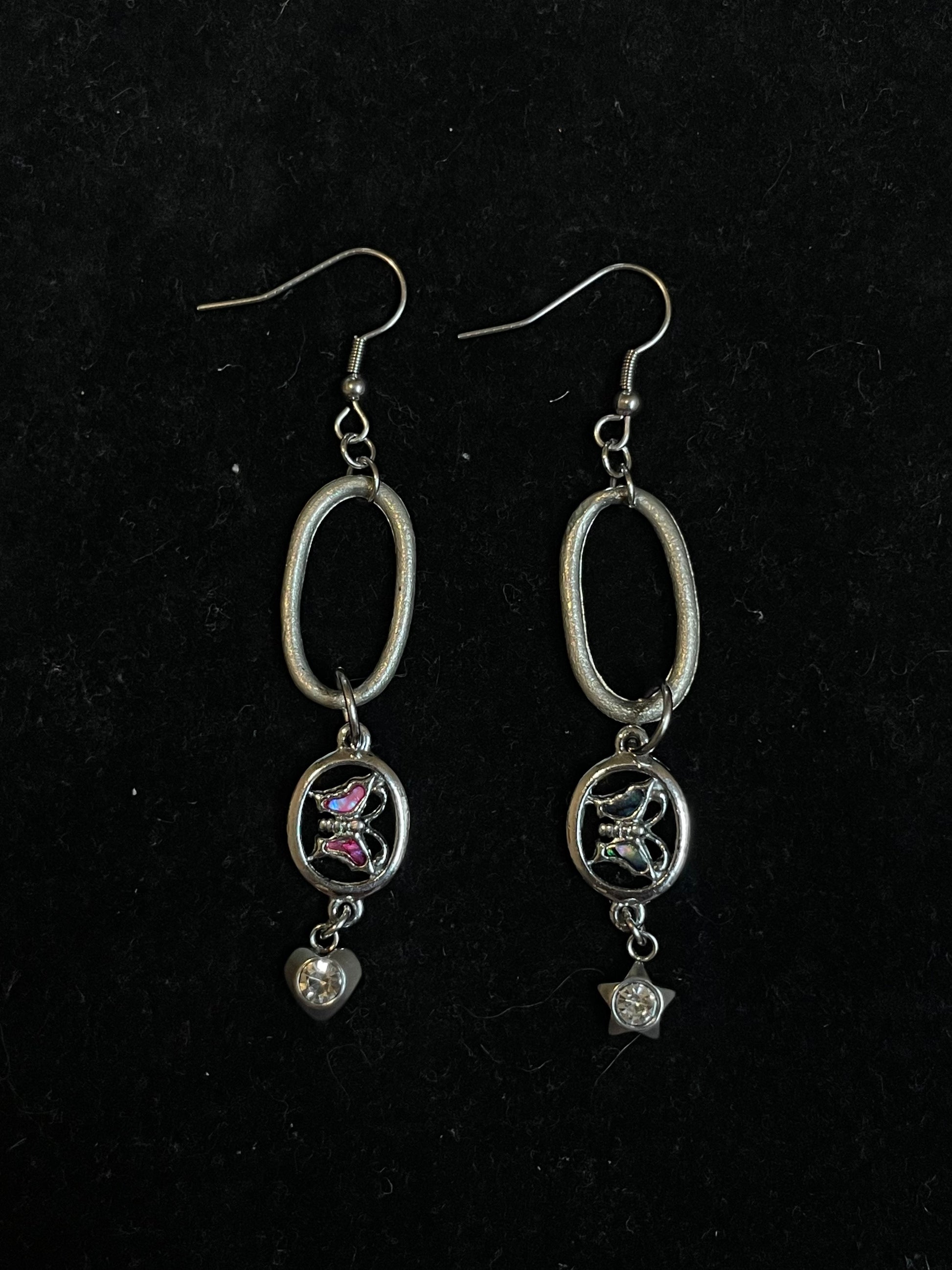 Made with second-hand charms and stainless steel hooks.